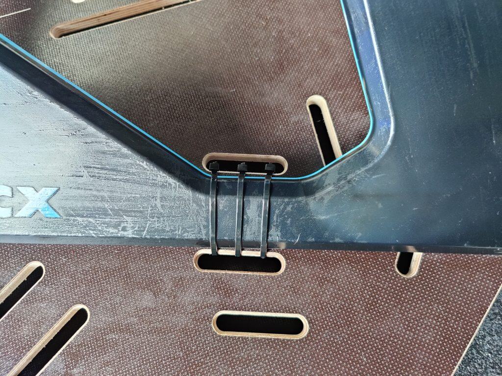 De Leeze Boom Board wordt geleverd als bouwpakket. De inbussleutel die je nodig hebt om hem in elkaar te zetten zit erbij in de doos. Het in elkaar schroeven is zo gebeurd. Met een kwartiertje heb je hem al in elkaar. De moeren zijn allemaal mooi verzonken in de bovenste plaat, dus je houdt na installatie een heel egaal oppervlak over. De fietstrainer kun je er op vastzetten met de bijgeleverde tie-wraps. De gaten in de Boom Board zijn precies op maat voor veel verschillende fietstrainers. Je weet dus zeker dat je je fietstrainer superstevig vast kunt zetten.