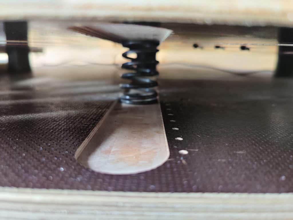 Een rocker plate met metalen veren is makkelijker af te stellen en dat hoef je ook maar een enkele keer te doen. De veren staan in een lange goot waarin je ze kunt verplaatsen. Hoe meer je ze naar het midden verplaatst, hoe groter de beweging die je kunt maken.